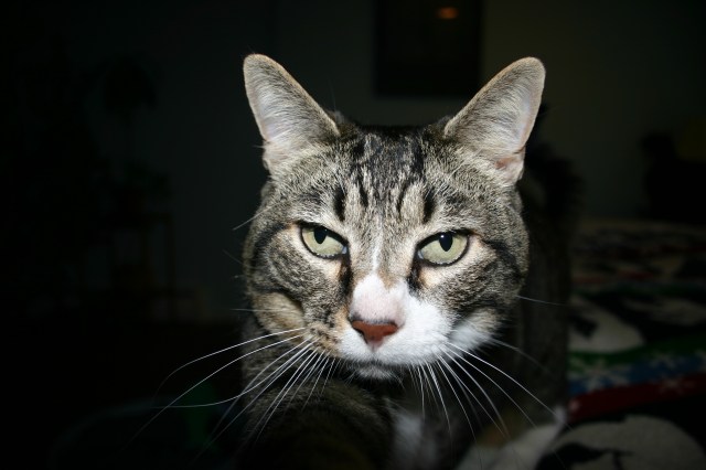 He hates the camera, usually runs away when he sees it. Today he wanted to take a swing at it. Fair enough, but here’s the result. I love his look of contempt.