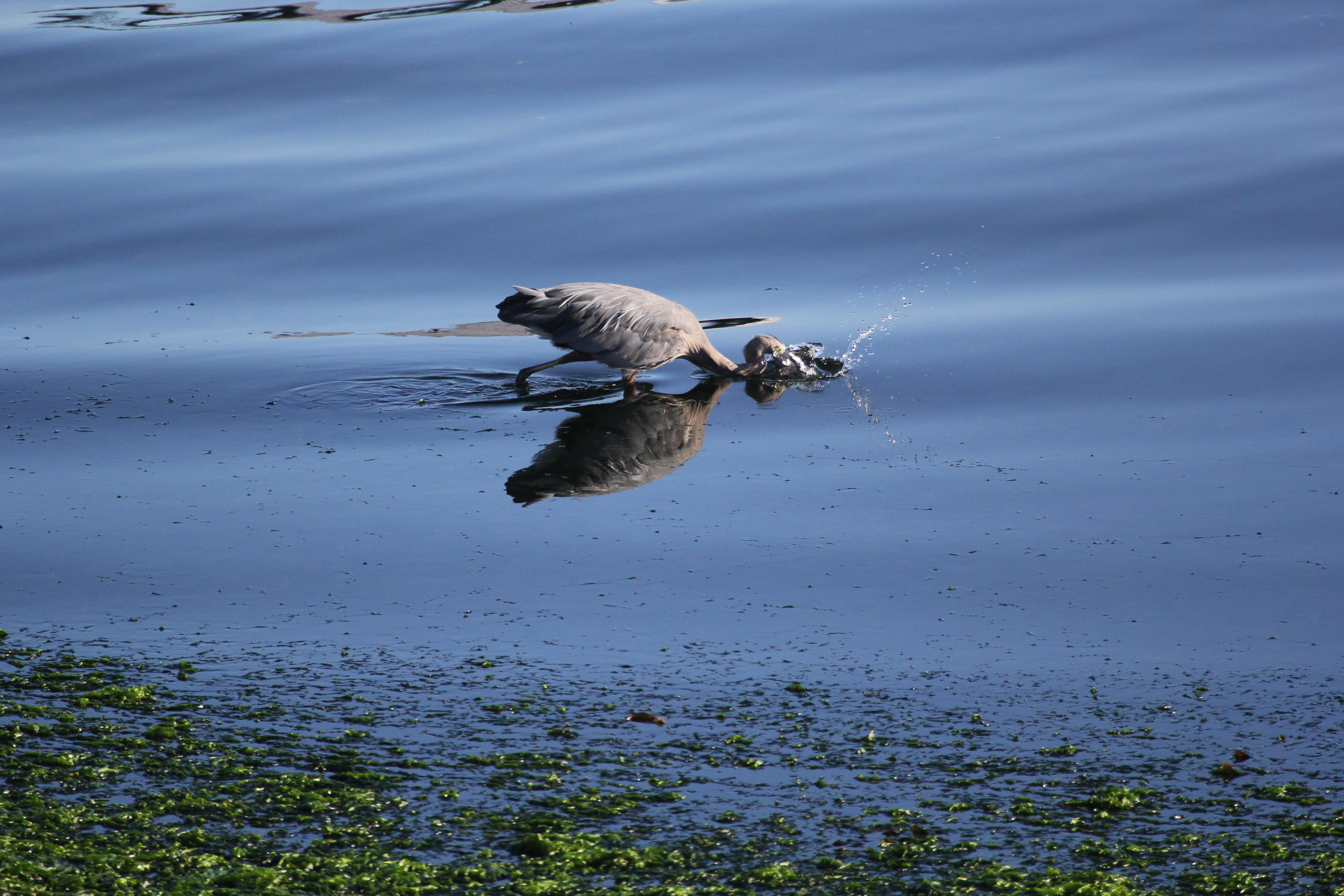 Never mind that it was 7am, the water was 50 degrees and some idiot with a camera and a cup of coffee was watching from his hotel balcony; that bird did not give up. Then again, it’s not like he’s gonna head down to the local market to buy something for breakfast. He’d more likely head for Denny’s for some Moons Over My Hammy. But where’s he gonna keep his wallet so he can tip appropriately? Such cruel circumstance.