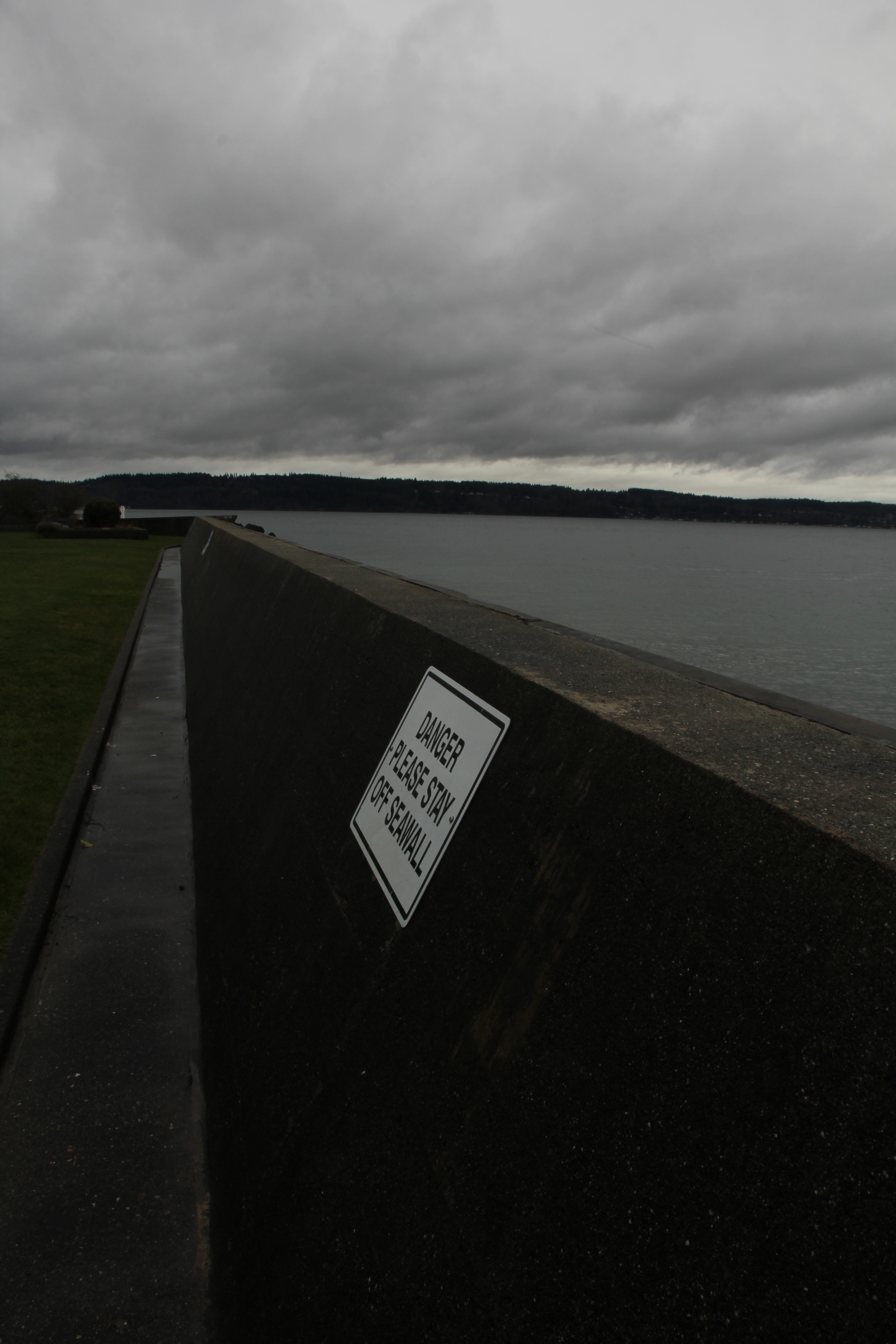 Rains were in charge today. Never really let go of their hold. Made the whole day look like a hangover. And some party-pooper city employee in charge of protecting us from ourselves preventing lawsuits against the city/county/state had to remind me that monkeying about on the seawall was a no-no –