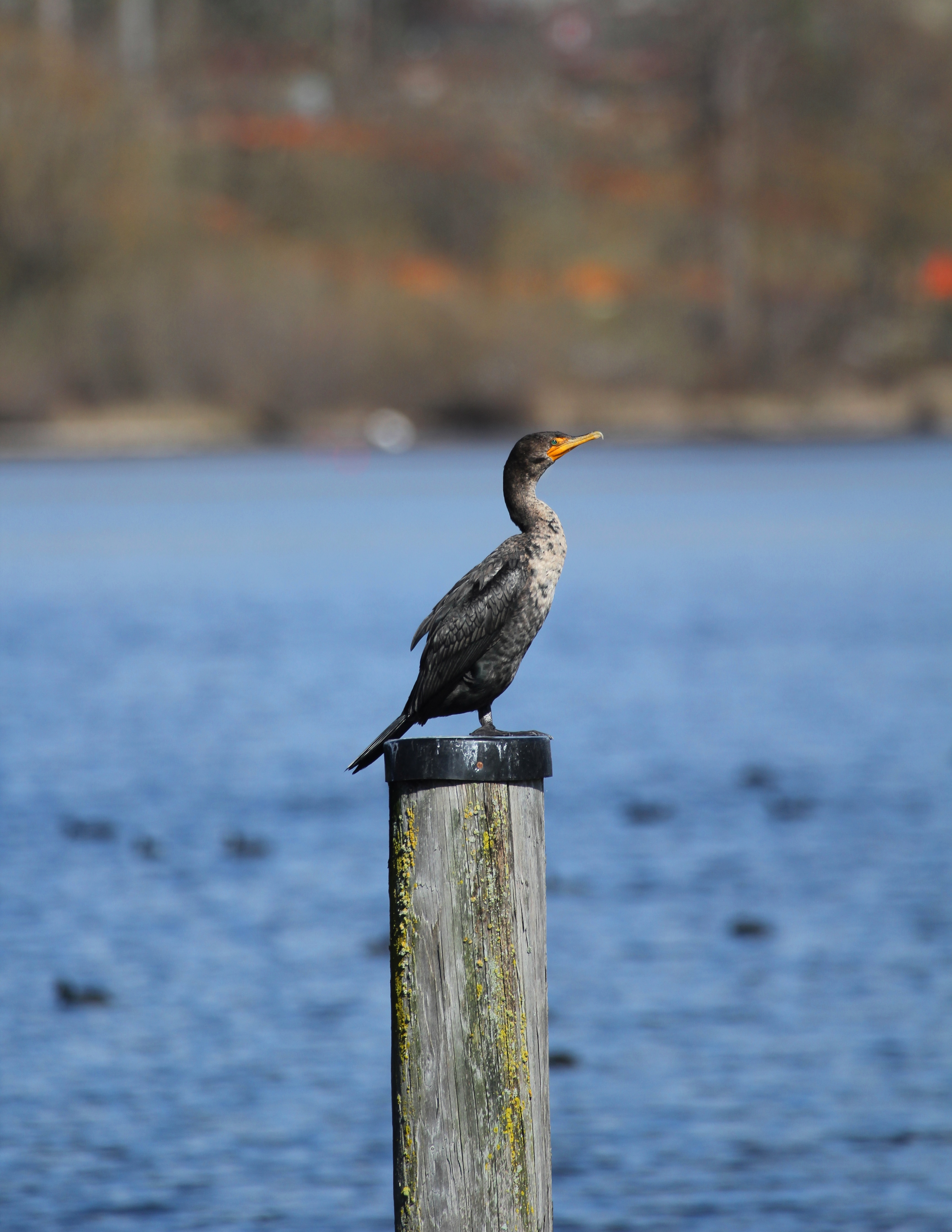 This one has it figured out! He’s a Double-crested Cormorant. He’s young, maybe a year or so. And he’s way ahead of the duck. At least as far as posing for the camera. On a perfect, Spring-like afternoon.