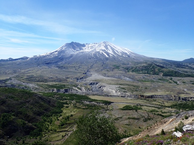 Well not actually in Mount St Helens, but in the parking lot at the Johnston Ridge Observatory. Look closely at the background of yesterday’s photo and you can see the trees knocked over when the volcano blew it’s stack 36 years ago.