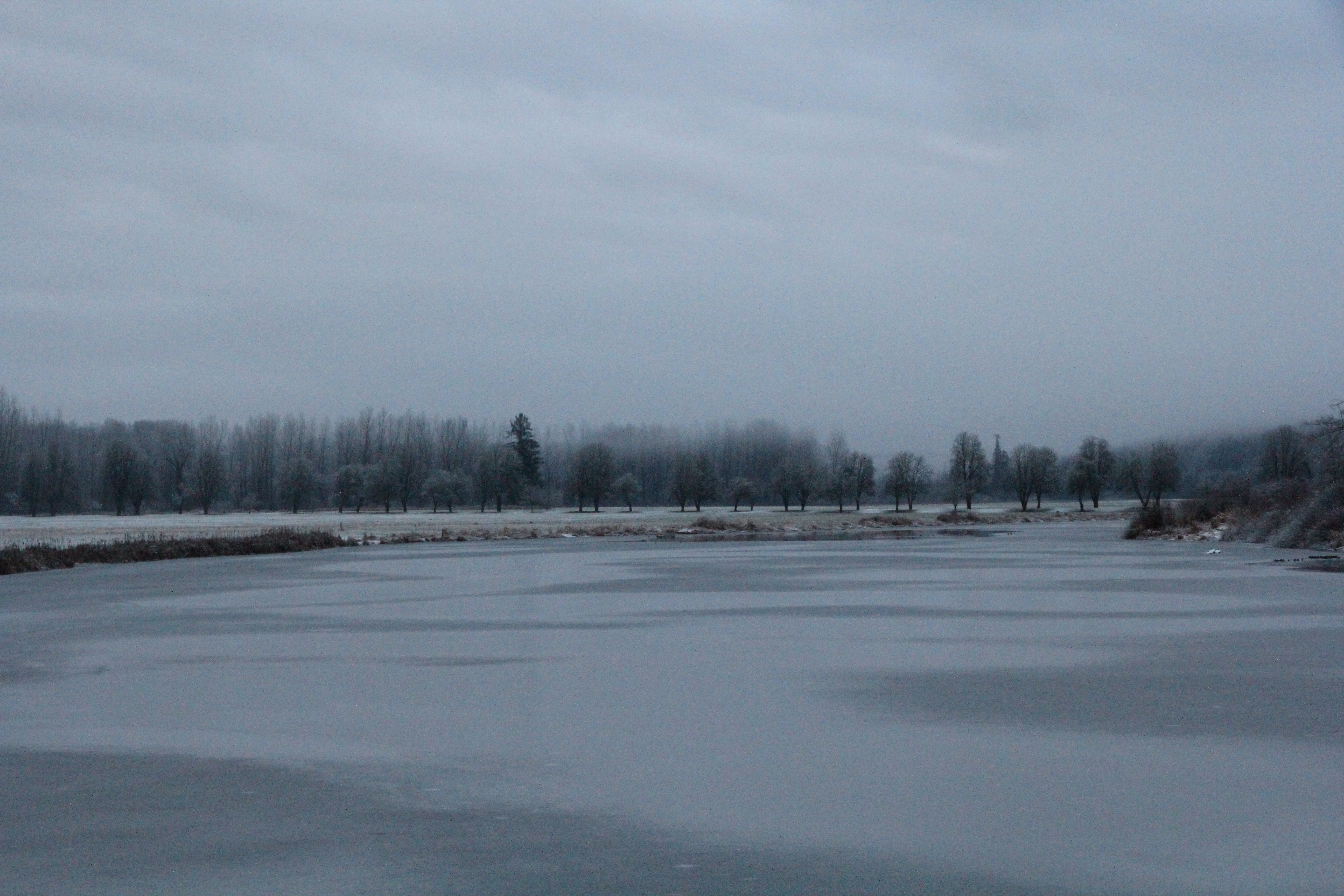 Lake is half frozen and there’s a dusting of ice. 10 degrees when I left for work the other day….