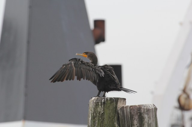 The cormorant was happy to have something pretty to look at while drying his wings –